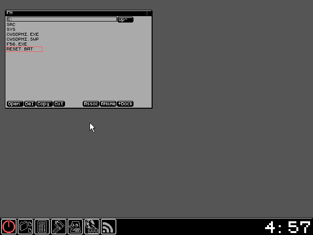 The build in dock allows you to launch not only built in applications but also DOS executables. Just find the application in the file manager and press "+DOCK" and a dialog guides you though the setup.